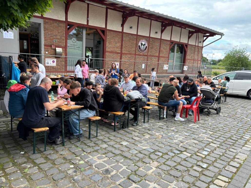 Im Anschluss an die Prüfung lud der Verein zum jährlichen Sommerfest ein. Trotz teils anhaltendem Regen ließen sich Mitglieder, Familien und Freunde die Stimmung nicht vermiesen. Bei leckerem Essen und geselligem Austausch wurde gemeinsam gefeiert – ein gelungener Abschluss eines sportlich erfolgreichen Tages.